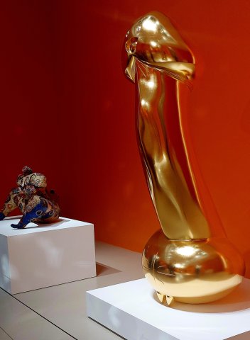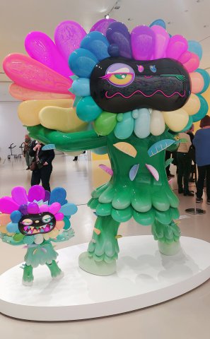 Niki de Saint Phalle ist unter anderem Schöpferin der Nanas. Die Verbindung von Popkultur mit politischen und gesellschaftlichen Botschaften ist typisch für ihr Werk. Die Arbeiten von Kusama sind dem Werk der Französin der nah: Markenzeichen ihrer Kunst sind die bunten „Polka Dots“ und die verspiegelten „Infinity Rooms“. Murakami ist nicht nur für seine „Superflat“-Werke bekannt, die stark von der Mangakultur beeinflusst sind. Er hat auch Musikvideos für u.a. Billie Eilish gestaltet.